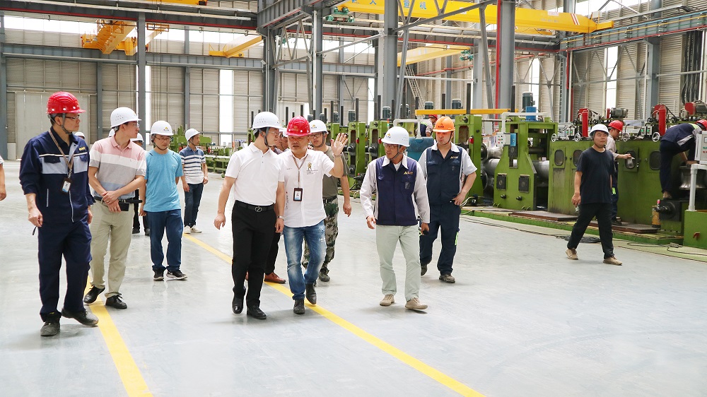 邹渊一行参观了焊管事业部生产车间,详细了解项目建设情况以及企业生产情况,仔细询问项目在建设、生产中遇到的实际困难,并对下一步工作提出了明确要求。在听完对产品原材料、工艺流程的介绍后,邹渊围绕生产的机械自动化等细节提出了相关问题,综合管理部经理助理彭洪林等一一作出了解答。