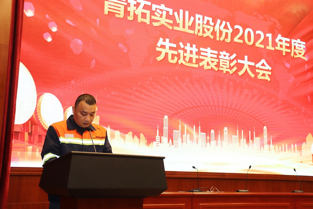 为表彰典型、弘扬先进,促进公司发展再上新台阶,1月18日15时,福建青拓实业股份有限公司召开了2021年度先进集体及先进个人表彰大会,鼓励每位员工再接再厉、再创佳绩。公司董事长周玉泉、总经理孙勇伟,副总经理李学强、樊宏川、袁少平及各生产部门部长、主任和全体先进等参加了会议。